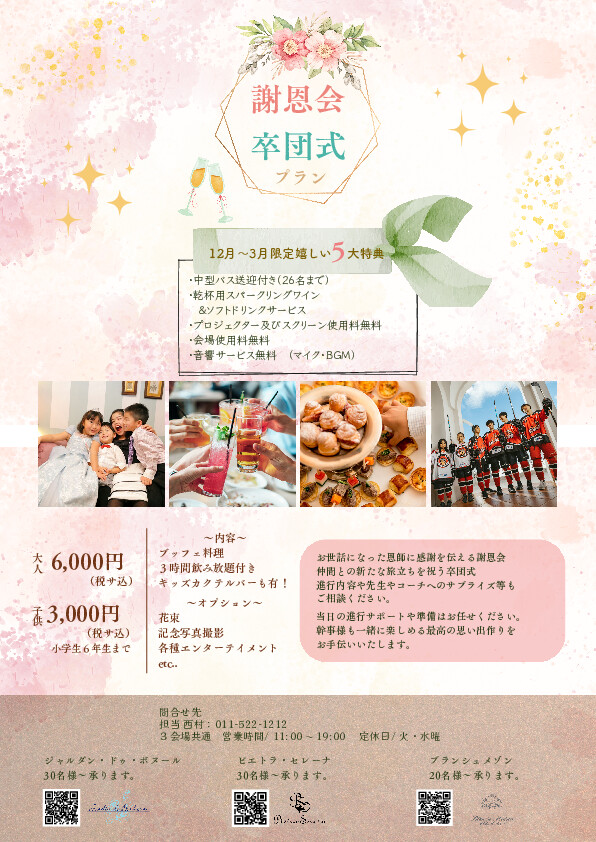 謝恩会・卒団式プラン 登場!