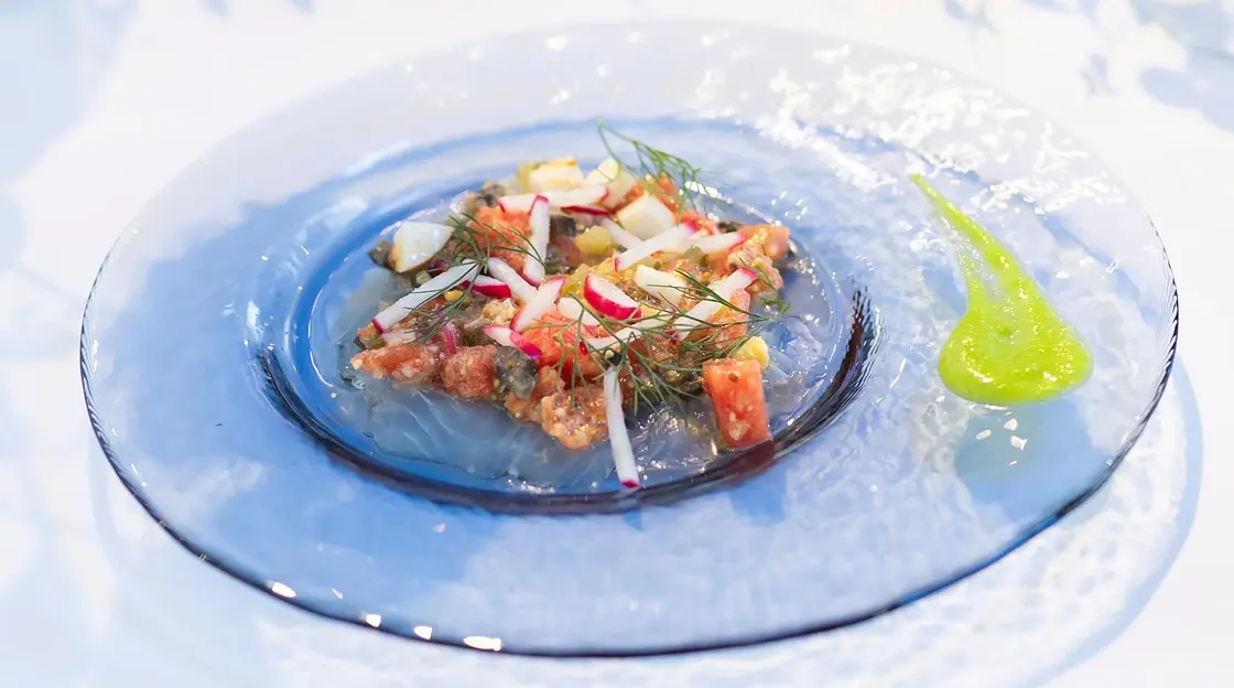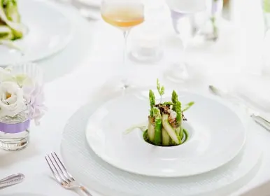 食の宝庫、北海道ならではの食材を惜しみなく使い、結婚式の日に旬を迎えた季節の味わいを、本格フレンチの技法で美しい一皿へ。