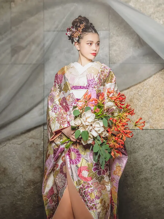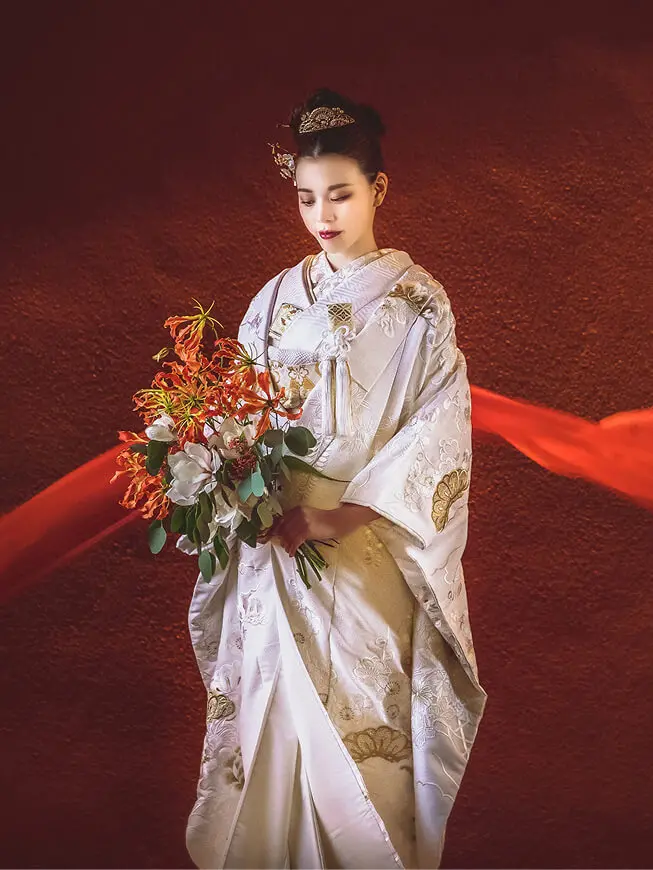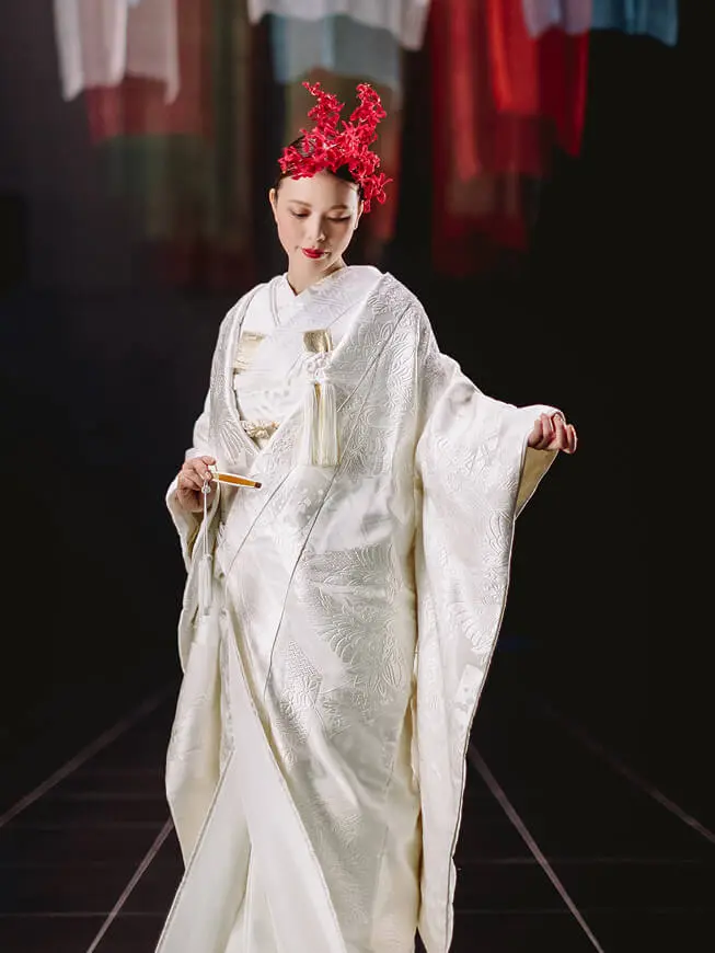 清らかな白無垢は織りや文様にこだわって。華やかな色打掛はお好みやお顔写りで選んでも。