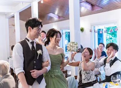 パーティ中に少し区切りをつけたい時にはお色直しを。おふたりの纏う空気が、会場全体の雰囲気を優しく変えていきます。