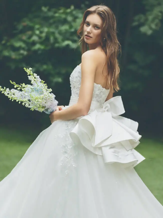 世界のトップデザイナーと熟練した職人たちがハンドメイドするドレス。ミリ単位で補正を行い、体のラインを美しく見せます。