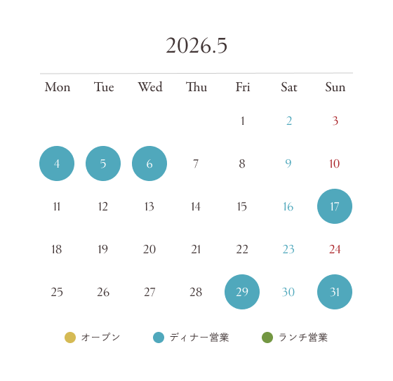 ランチのみ4月3日 (金)/ 4月10日(金)/ 4月12日(日)/ 4月24日(金)/ 4月26日(日)